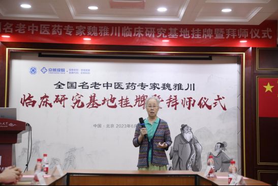 2023年6月14日,全国名老中医药专家魏雅川京城皮肤临床研究基地挂牌暨拜师仪式在北京京城皮肤医院隆重举行。
