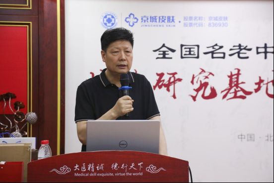 杨金生所长对基地落户京城皮肤医院表示热烈祝贺,对魏雅川教授的中医学术造诣给予了高度肯定。他认为,社会办医是我国医疗卫生体系的重要组成部分,师承教育是中医院校教育和继续教育的重要补充,京城皮肤医院作为社会办医的先行者和专科领导者,拥有皮肤病检查治疗的先进技术设备和优秀的中青年医师人才储备,魏教授在京城皮肤医院设立临床研究和传承基地,可以让更多的中青年医师拜师学艺,做到教学相长、中西互鉴,提高皮肤病诊疗技术,更好地服务于患者。