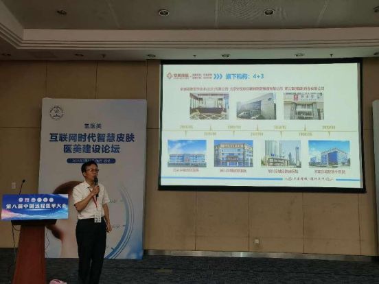 (祝希春先生在大会互联网时代智慧皮肤医美建设论坛上做企业介绍)