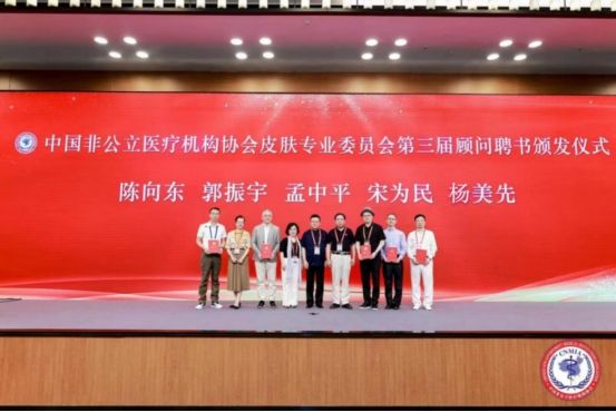 此次会议上,中国非公协会皮肤专委会皮肤组举行了换届选举,京城皮肤医院集团杨美先董事长受聘为第三届顾问,副总裁林雄心先生当选为副主委。