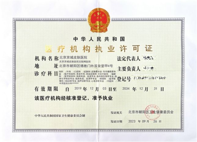 近日,北京京城皮肤医院顺利通过北京市朝阳区卫健委和医管中心专家组对互联网医院评审验收。2023年9月26日,正式获批互联网医院牌照,标志着北京京城皮肤医院“互联网+医疗”开启全新篇章,迎来新的里程碑!
