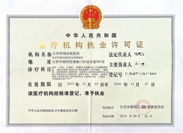 北京京城皮肤医院互联网医院于2023年9月26日即获得北京市朝阳区卫健委颁发的执业许可证,正式拥有互联网医院“牌照”,“持证上岗”,打通线上便捷就诊通道,提供“线上+线下”、院内就医和院外服务无缝衔接的连续医疗健康服务。