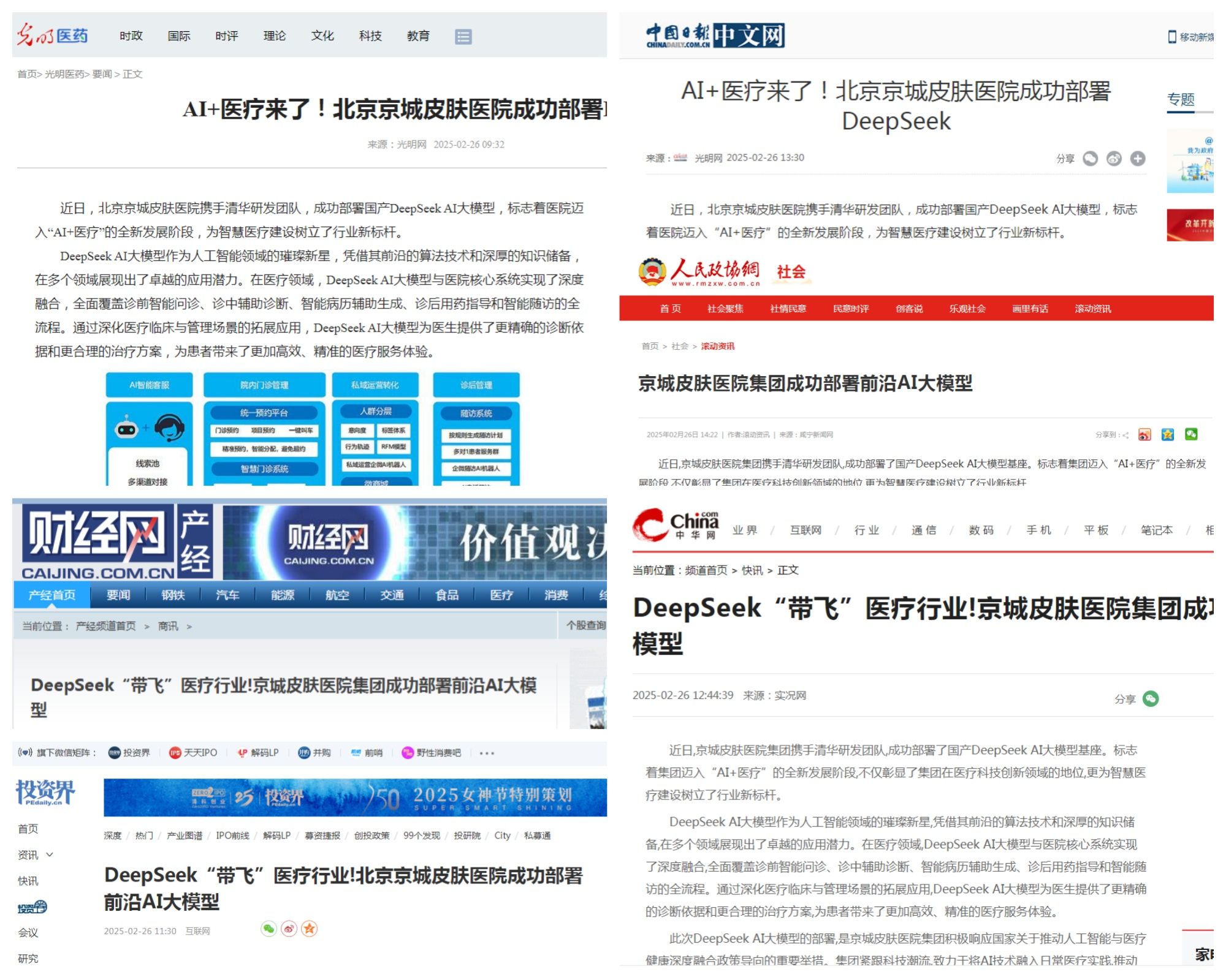 近日,京城皮肤医院集团携手清华研发团队,成功部署了国产DeepSeek AI大模型基座。标志着集团迈入“AI+医疗”的全新发展阶段,不仅彰显了集团在医疗科技创新领域的地位,更为智慧医疗建设树立了行业新标杆。
