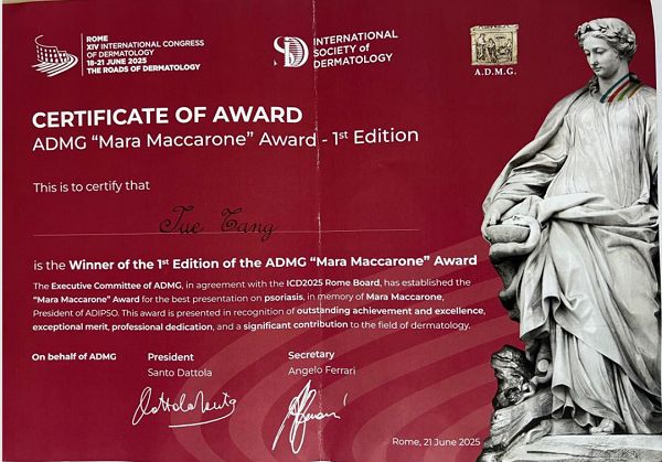 近日,由国际皮肤科学会(International Congress of Dermatology, ICD)主办的第14届国际皮肤病学大会(ICD2025)在意大利罗马召开,来自120多个国家和地区的4012名专家学者参加会议,共同探讨皮肤病诊疗新技术与研究成果。首都医科大学附属北京朝阳医院原皮肤科主任、北京京城皮肤医院副院长何焱玲教授团队凭借在银屑病神经免疫调控机制上的研究成果摘得MaraMac-carone Award奖项。