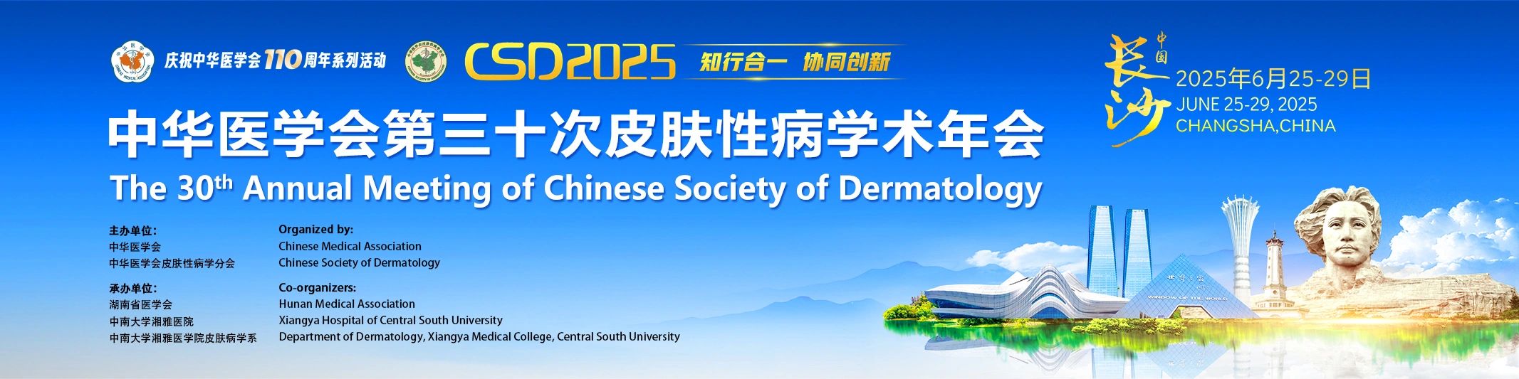 6月29日,由中华医学会、中华医学会皮肤性病学分会主办,湖南省医学会、中南大学湘雅医院、中南大学湘雅医学院皮肤病学系承办的中华医学会第三十次皮肤性病学术年会(CSD 2025)在长沙圆满闭幕。作为中国皮肤科学界规模大、影响力广的学术盛会之一,本届大会云集全国知名的专家学者,汇聚前沿研究成果和创新诊疗理念,为广大医师搭建起交流与学习的广阔平台,共同推动皮肤性病学的蓬勃发展。大会共设1个主会场、80个分会场,设立了269个学术专场,近万位来自海内外专家学者共襄此次学术盛宴。