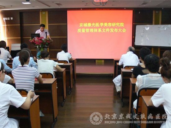 2010年7月28日下午,京城皮肤医院召开了“ISO质量管理体系发布大会”。京城皮肤医院领导当众宣布了质量管理体系文件中所规定的发布令、任命书、质量方针和质量目标。
