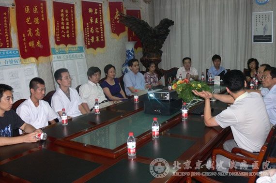 随后,众人进入会议室展开了讨论。考察团向京城皮肤医院相关项目负责人员进行了经验交流,并就十一五项目展开了激烈讨论,交换了意见以及对提出的解决方案进行研究。会上,众多省市性病艾滋病预防控制中心负责人纷纷表示今后将加强和京城皮肤医院的合作,共同完成更多的课题项目。