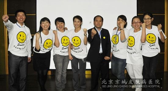 在举国上下欢庆伟大祖国六十一周年华诞之际,北京京城皮肤医院为了全面提高我院医疗服务质量,端正服务理念,增强服务意识,改善服务态度,强化“以病人为中心”的服务意识,由医院企划部、办公室、护理部等部门共同发起在全院开展“京城微笑服务季”活动,在今天上午京城皮肤医院向全院员工发起倡议,号召全院各部门员工结合本部门工作特点,积极响应,踊跃参加,并在全院掀起笑脸服务的高潮!