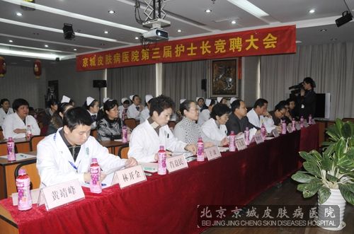 2010年12月1号下午,北京京城皮肤医院在多功能会议厅举行了第三届护士长岗位竞聘大会。10名具有大专以上护理学历的护理骨干走上了竞聘演讲台,向京城展现自己的领导才能,并且希望得到大家的认可。本次竞聘大会受到了医院各界领导的高度重视,特别是北京京城皮肤医院名誉院长殷致宇,在百忙之中抽出时间前来出席,并且在竞选过程中给参与竞选的选手进行点评指导。于此同时,医院还邀请了在医学领域知名的专家同仁共同参与。