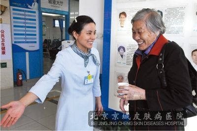 作为**医保定点医院的北京京城皮肤医院导医提供全方位预约、指引服务。仅从验血患者抽血后的一杯免费牛奶就可以充分看出“暖人心的 服务”。医院还实行“分类定期访问”制度。对患者的用药、病情的发展做详细的记录并给予温馨的指导与提醒。