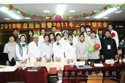 2011年1月19日下午四点整,北京京城皮肤医院2010年终总结表彰大会暨2011年工作计划大会在院多功能会议厅隆重举行,院领导、专家和全体医务工作人员参加了表彰大会。大会由行政人事科科长白树新主持。