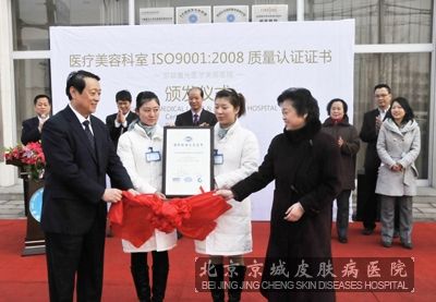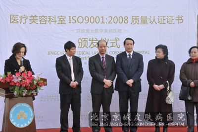 2011年3月5日,北京京城皮肤医院医疗美容科室获得了北京世标认证中心颁发的ISO9001:2008质量管理体系证书,标志着京城医学美容医院的质量管理水平迈入一个新的台阶,再度成为同行业中**质量标准管理的典范,对提高京城医疗美容科室的竞争力,为京城形象的进一步提升起到了积极的作用。同时,也体现了北京世标认证中心对京城激光医学美容医院自主创新、高品质服务的充分肯定。