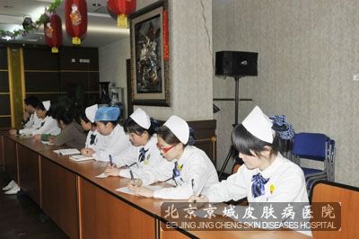2011年3月22日,北京京城皮肤医院护理部召开新员工培训大会,护理部主任刘梅玲主持了本次的培训会。本次护理部的培训对象主要针对于医院新护士,目的在于通过参加本次的培训,让新员工在今后的工作中使医疗服务不断规范、优化。