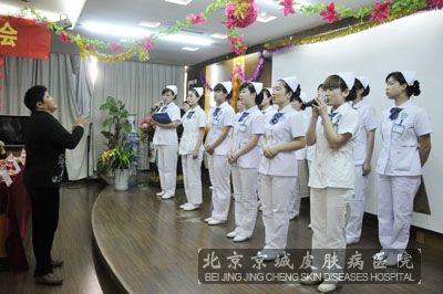5月11日下午16点30分,北京京城皮肤医院护理部举办“庆祝5.12 护士节暨夯实 护理活动月总结大会”,北京京城皮肤医院光疗、病房、过敏原、手术室、治疗室、面膜室、输液大厅等科室的60多名护士,用欢快的歌声和舞蹈庆祝自己的节日。