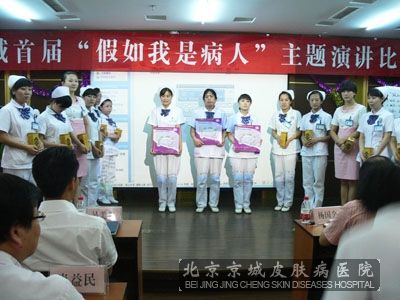 据了解,开展此次演讲比赛的主要目的是为了,通过医生、患者换位思考的形式,激发医务工作者的服务热情,强化服务意识,以便更到位地理解病人的要求和愿望,改善服务态度,努力提高医疗质量和服务满意度,促进了和谐医患关系的构建。让北京京城皮肤医院医护人员站在患者的角度, 的为患者服务。