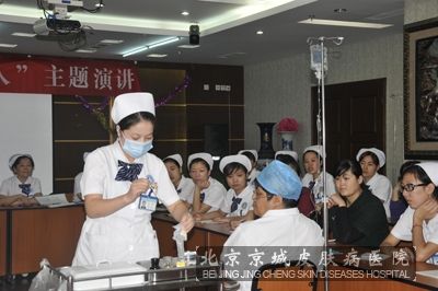 护理技术操作培训在北京京城皮肤医院护理部已成惯例,“我们希望通过举行这样类似培训活动,以点带面,从实际出发规范和统一全院护士临床管理的基本技术操作流程,从而 的提高我院护理人员的服务意识和操作能力,为提高全院护理工作质量奠定坚实基础。”护理部主任刘梅玲表示。
