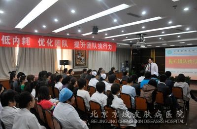 为加强团队建设及凝聚力,增强执行力,建立一支素质高、凝聚力强的管理队伍。10月21日下午,由北京京城皮肤医院人力资源部组织,特邀北京锡恩英才 讲师杨海军为我院开展培训讲座。本次会议由人力资源部郭静主持,培训的主题是“提升团队执行力、降低内耗、优化团队”。杨老师在轻松、活跃的氛围中,讲述了如何提升个人执行力、如何提升团队执行力,使大家清楚认识到所欠缺的理念和应该改进的地方。