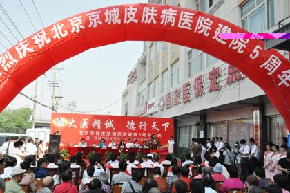 五载风雨谱华章,京城济世更辉煌。2012年5月17日,北京京城皮肤医院举办了五周年庆典活动暨“京城皮肤健康义诊车”启动仪式。原卫生部副部长、 医师协会会长殷大奎,北京市朝阳区卫生局医管中心主任高文惠,北京市防艾协会副会长关宝英,儿童福利院院长董文妍,北沙滩社区党委书记王春林等30多位领导出席了本次活动。首都医院 皮肤病专家、众多媒体、医院全体员工及市民欢聚一堂,共庆五年华诞,共话美好愿景。