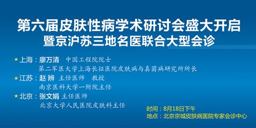 据悉,为了使广大患者有机会与专家面对面,在第六届皮肤病学术会期间,主办方特别邀请了京沪苏三地名医联合会诊。期间,第二军医大学上海长征医院皮肤病与真菌病研究所所长 、 工程院院士廖万清;南京医科大学**附属医院赵辨主任等皮肤病专家将于8月18日下午在京城皮肤医院亲诊,平时能把这些专家汇聚一起会诊是非常不容易的,因为也只有在一年一度的学术会期间,这些业界知名专家才有机会共同出席大会。本次会诊只有半天时间,主办方将较大限度为患者安排专家亲诊,机会难得,望广大患者抓紧时间预约。