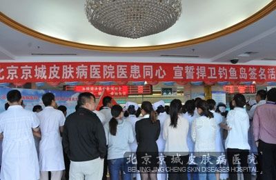 钓鱼岛及其附属岛屿自古以来就是 的固有领土,铁证如山。近年来,日本 在钓鱼岛问题上不断挑起事端。2012年9月12日,北京京城皮肤医院全体员工,闻听日本 的所作所为,各个都义愤填膺,强烈发出抗议!自发组织“医患同心,宣誓捍卫钓鱼岛签名活动”,在五星红旗下集体宣誓。以此坚决支持我国两岸四地的保钓行动,坚决支持我国 为了维护钓鱼岛主权所采取的一切措施,坚决捍卫领土主权的行动。