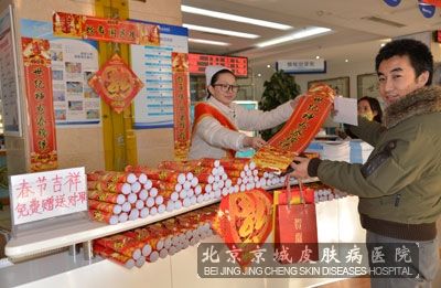 的老百姓都有春节贴春联的传统习惯。2013年新春佳节临近,为了表达美好的祝愿,北京京城皮肤医院开展主题为 “京城新春送祝愿,福字春联进万家”的新春祝福活动。