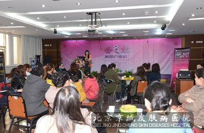 较后,北京京城皮肤医院 皮肤美容专家刘梅女士为大家从皮肤科专业知识详细的讲解了《春季皮肤保养经验》。刘主任说:对于春季来说,皮肤处于一种敏感阶段,因为肌肤在度过一个漫长的冬季,皮肤特别容易干燥和缺水,所以对于容易过敏的肌肤,平时除了做好保湿的功课外,抗氧化也是春天护肤的重点。刘主任强调,对于肌肤特别容过敏的女士,一定要减少外出游玩,以免花粉传播容易让肌肤过敏。