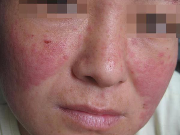 4、一旦得了红斑狼疮,患者就会出现皮肤、粘膜损害,患者的身上会出现红色丘疹或者斑丘疹,主要位于两颊及鼻根部,有的患者还会出现盘状红斑、斑丘疹、甲床裂片状出血等。