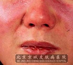 目前皮肌炎较初脸颊呈现浮肿性红斑,特别是在眼睑呈紫红色斑点,面颊部可出现脂溢性皮炎样的弥漫性红斑。时常出现毛细血管扩张,这就是大家所说异色皮肌炎。