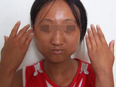 1.皮肤损害:皮疹一般由四肢远端和头面部开始.对称而向心性分布,重者延及全身皮肤。早期为浮肿期,因实质性水肿皮肤不易捏起,肤色正常或苍白。数周后进入硬化期,皮肤干燥绷紧板硬如皮革,不易捏起,有蜡样光泽,可有色素沉着、色素减退和毛细血管扩张。