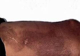 (3)萎缩期(atrophic phase):皮肤萎缩变薄如羊皮纸样,有时皮下组织及肌肉亦可发生萎缩及硬化,皮纹消失,毛发脱落,皮肤光滑而细薄,紧贴于骨骼,指端及关节处易发生顽固性溃疡,亦可出现毛细血管扩张,以及皮下组织钙化。