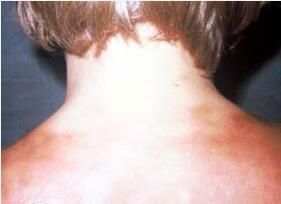 (2)如皮肤硬变面积大,分布广泛,皮损下的肌肉甚至骨骼肌均可发生病变,影响关节活动度,关节可挛缩畸形。