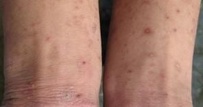 5、挪威疥:也叫痂皮性疥疮,是一种*异常反应。多见于体弱患者,患者的皮肤一般都比较干燥,有结痂,其损害主要是角化过度的红斑鳞屑性斑块,也可出现糜烂、脓疱、恶臭等症状,患处的毛发往往容易干枯脱落、指甲变厚变扭曲、全身淋巴结肿大,鳞屑厚,病情重,而且有很强的传染性。