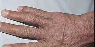 第二个典型症状虫行隧道:于手指缝处可见长约2---4毫米,呈灰褐色的不规则曲线,此为疥虫挖掘的隧道,是疥虫钻行的痕迹。