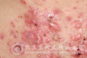 毛囊虫皮炎常好发于年轻人的面部,也可发于颈部、胸部和背部,在炎症发生之初局部的皮肤会轻微泛红,然后逐渐红色加深转变为明显的红斑,发生部位是从鼻头开始逐渐蔓延到鼻翼、额头、脸颊等部位,严重的还会延伸到颈部和胸背部位,接下来会有丘疹、脓疱出现在这些红斑上面,后期脓疱和丘疹都会破开结痂或脱屑,较终会导致鼻部的皮肤变得肥厚且会扩张毛囊口和毛细血管,患病时患者还会出现轻微的瘙痒感或是疼痛感,总体现象有些类似于酒渣鼻或是痤疮等,但不会黑头或粉刺出现。