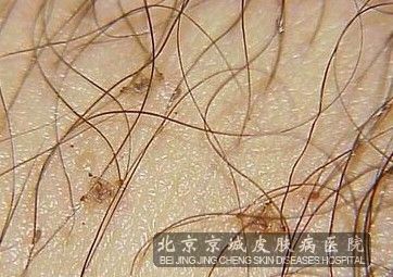 北京京城皮肤医院温馨提示:找到头虱或虱卵即易确诊。卵牢贴头发上,不易刮除,与普通头发皮屑容易区别。