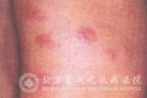 1.螨虫咬伤后会在皮肤产生红色丘疹、丘疱疹、水疱或丘疹性荨麻疹样的皮疹现象,有时候还能够在皮损的中央发现虫咬瘀点;
