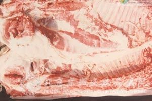 猪囊虫通常表现为呈白色半透明的小囊泡,一般长6~10毫米,宽大约为5毫米,小囊泡的囊内含有囊液,此外,囊壁上还有一乳白色的小结,在这些小节中还嵌藏着一个头节。这些囊虫包埋在肌纤维间,在外面看很像散在的豆粒或者米粒,因此有人称有囊虫的猪肉为豆肉或者是米肉。