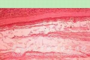 表皮囊肿的组织学形态是圆形的珠光白结节,具有完整的包膜,伴有一定的钙化,肿物的表面一般比较光滑,囊肿的囊壁较薄呈半透明状,内有略带油腻的干酪样物质。