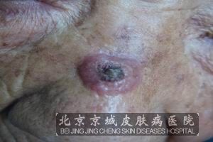 一、单发性角化棘皮瘤皮肤受损迅速增长,在2~5周内从2mm的斑疹可逐渐到20mm,皮肤色结节。结节皮肤表层可出现平滑的火山口,皮损光滑与周围界限较为清晰,皮肤表层可见毛细血管。