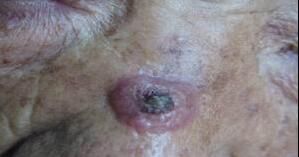 一、初期:可出现在皮肤表层凹陷呈火山口样其中充满角质表皮底部增生突不规则地向 表层。表皮突与周围的间质较为模糊并含有不典型表层*和很多核分裂相在 表层内可见炎症性*。