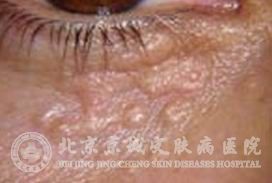 皮疹为圆形或者扁形,并有隆起性结节,呈现桔黄色或者黄色,好发四肢关节的伸侧面。