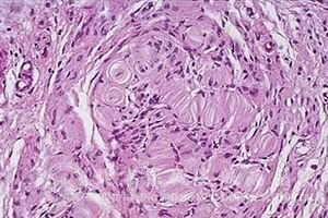 当患者出现眼部的神经性纤维瘤病,可以发现其上眼睑有纤维软瘤或者是丛状神经纤维瘤存在,患者的眼眶可能会扪及肿块和突眼搏动,通过裂隙灯光可发现虹膜有粟粒状的圆形小结节,颜色为橙黄色,这是错构瘤,瘤体的数量可能会随着患者年龄的增长而变多,这种症状也是神经性纤维瘤病I型所特有的症状表现。