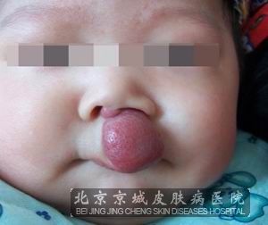 小孩草莓状血管瘤颜色暗红或鲜红色隆起,质软,压之退色,无自觉症状。好发于面部,亦可见于颈、胸、背等部位。压之退色的鲜红斑片,不突出皮肤表现,一般在出生时即明显可见,不会自然消退。必须到大医院接受治疗。小孩草莓状血管瘤生长在头面部等暴露部位会影响美观的部位。建议患者应早发现早治疗。所以因为血管瘤一旦出现,对草莓状血管瘤患者生长在隐蔽部位常出现在脖、会阴等多个部位,比较容易出现破溃出血现象,为了避免破溃引起出血继发性病毒感染等情况,应及时进行治疗。