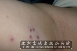 3、皮损呈带状分布在皮神经一侧,其他水疱之间的皮肤很正常。
