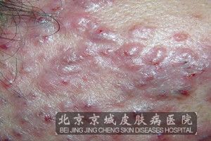囊肿:主要的皮肤表现为囊肿,是发展在结节的基础上,毛囊皮脂腺结构的脓液,细菌碎片,皮脂,角化病为炎性*浸润,是毛囊皮脂腺结构基本破坏了。用手挤压可挤出血脓样液体。》》》》推荐阅读:痤疮的治疗方法