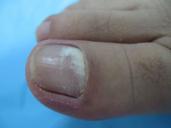 3、白色表浅型灰指甲:发病后患者的甲板表面出现白点的斑片,直径大小约为1毫米,患者的病甲呈脆性。