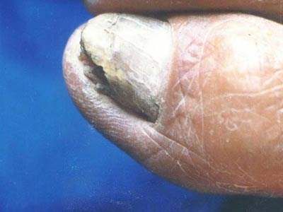 症状一:甲下型甲癣。常常是从甲板两侧或末端开始,多数会先出现轻度甲沟炎,随着病情的发展,渐渐变成慢性或渐趋消退。甲沟炎还会导致患者的甲面有凹点或沟纹,持续不变或渐累及甲根。一旦甲板被感染,即可形成裂纹、变脆或增厚,呈棕色或黑色。