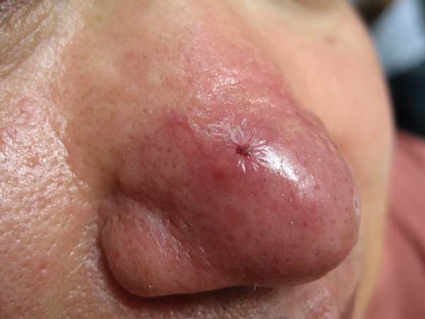 早期的时候,通常表现为颜面中部的弥漫性暗红色斑片,还伴随有丘疹、脓疱等临床表现的出现。一般表现为鼻子发红,以鼻尖部的情况较为严重。这种情况的发生都是因为鼻部的毛细血管扩张所导致的。推荐阅读:酒糟鼻图片