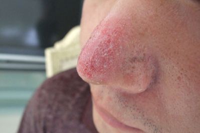 热天,鼻子会发红冒油;冬天,鼻子会脱皮疼痛。医学上称之为“酒糟鼻”。酒糟鼻一般长在鼻尖和鼻翼处。初期表现,鼻部潮红而且油腻光亮,往往还不易引起注意。所以有人建议,应将酒糟鼻叫作“毛囊虫皮炎”。