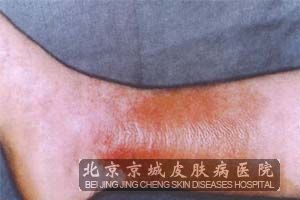 3、皮损特点:丹毒的初期症状表现为皮肤出现鲜红色的水肿斑,皮损表面紧张发亮,边界较清楚,严重者还可出现水疱。